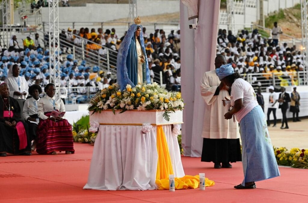 Plus tard, après avoir parcouru en hélicoptère les 130 kilomètres séparant Luanda de Muxima, le Successeur de Pierre a présidé la récitation des mystères glorieux dans le sanctuaire marial le plus fréquenté du pays. Près de 30 000 fidèles, dont une grande majorité de jeunes, se sont unis à sa prière.