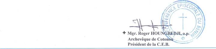 Tél. +229 21 30 66 48 / 21 30 07 36 – Fax : 21 30 07 36 / 21 30 07 07 cel. : +229 91 36 66 66 – E-mail : cepiscob@gmail.com CONFERENCE EPISCOPALE 04 BP. 358 COTONOU – REPUBLIQUE DU BENIN